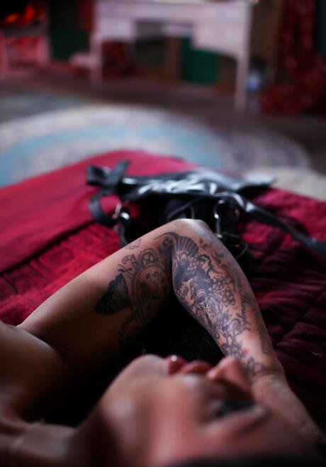 Charming british dark-haired cutie Kerry Louise in sexy posing on camera