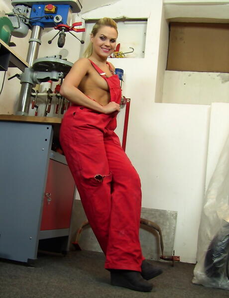 Charming czech blonde Barra Brass in uniform outfit showing big knockers and spreading her legs