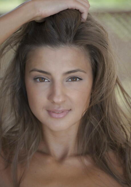 Charming hottie Maria Melena denudes big tits and masturbates outside