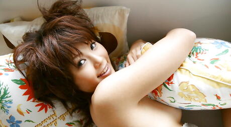 Charming japanese cutie Azumi Harusaki bares big titties and sexy ass