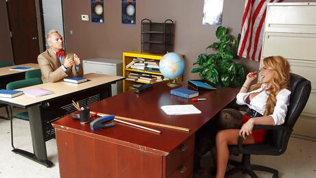Curious american blond Corinna Blake blowing cock and takes a facial