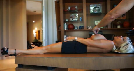 Curious american blond wife Sandra Otterson work on dick and gets a facial