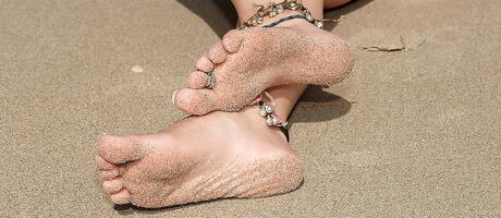 Curious american blonde Michelle Honeywell is foot fetishist on the beach