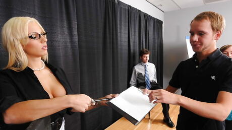 Curious american Lylith Lavey in hose banged hard after good suck in office