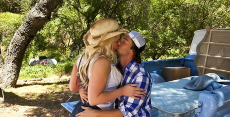 Curious american Phoenix Marie in hot underwear drilled in her bald pussy after good suck outside