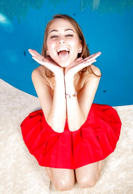 Curious american porn star Riley Reid reveals her butt in hot underwear and spreading her legs at pool