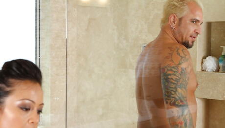 Curious asian dark hair Mia Lelani banged hard after good cock suck in bath