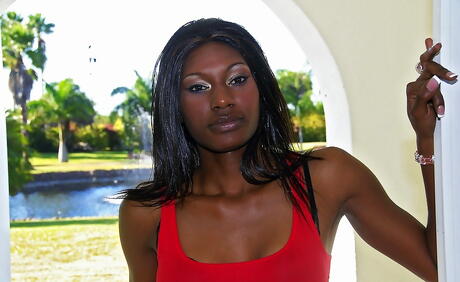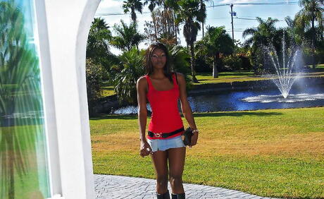 Curious babe Persia London in fancy skirt baring her butt outdoor