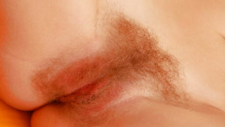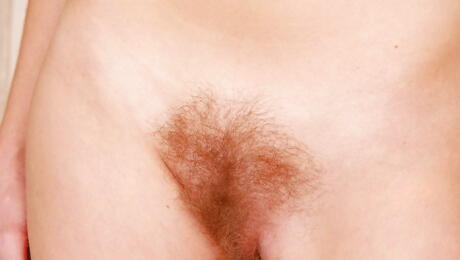 Curious blond cutie Tangi exhibits her ass and hairy beaver