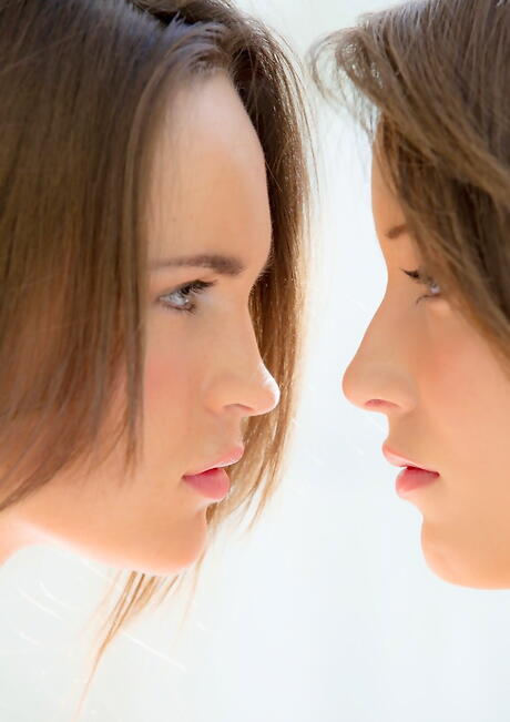 Curious girls Teal Conrad and Malena Morgan have a passionate lesbian foreplay outside