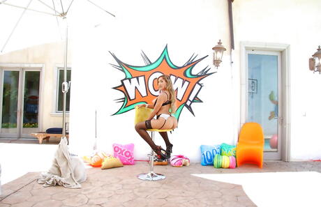 Curious latin bombshell Chloe Amour in hot undies exposes her butt outdoor