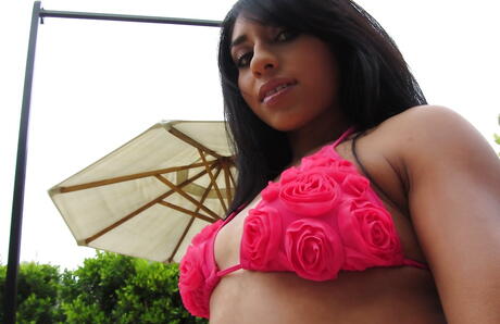 Curious latina babe Candy Martinez in hot erotic scene near the pool