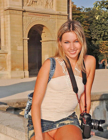 Curious russian milf Cherry Jul exposes her ass and nice pussy outdoor