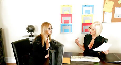 Curious women Avy Scott and Puma Swede in uniform licking tasty pussies and playing with dildo