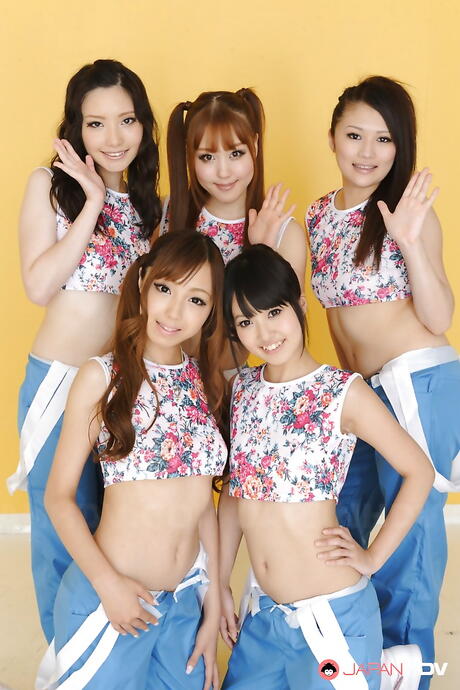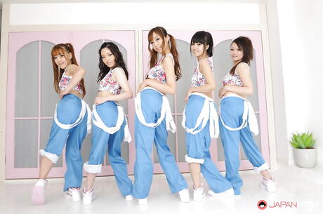 Cute asian teens posing in jeans and then undressing and waiting for orgy