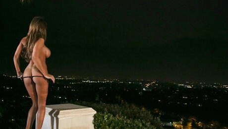 Delightful american bombshell Madison Ivy in undies exhibits big titties and jerks off at pool