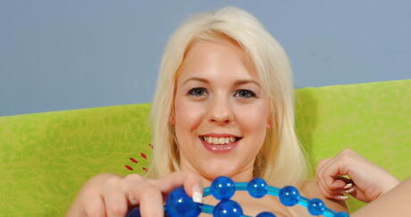 Delightful czech blond hottie Kristina Rud exhibiting big knockers and playing with dildo