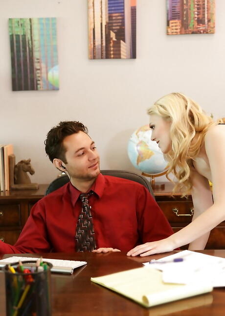 Deluxe american blonde Lily Rader in sexy underwear fucked hard after sucking big cock in office