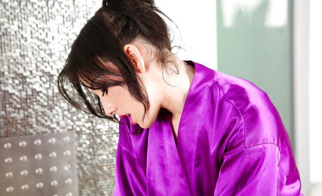 Deluxe american brunette Jennifer White in sexy undies sucking deep black rod