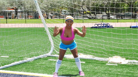 Deluxe american Desiree Lopez in fancy shorts exposes her ass outdoor