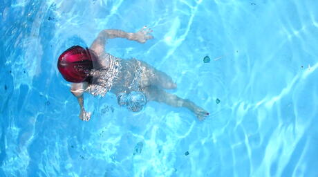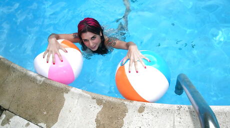 Deluxe american milf Joanna Angel bares her butt near the pool