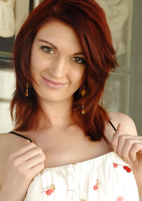 Deluxe american redheaded cutie Alana Rains shows her ass in skirt and spreads her legs outside