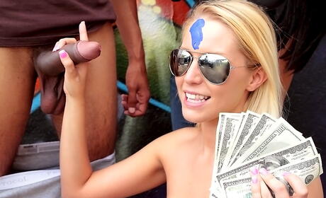 Deluxe canadian blond Cameron Canada in jeans sucking deep rod