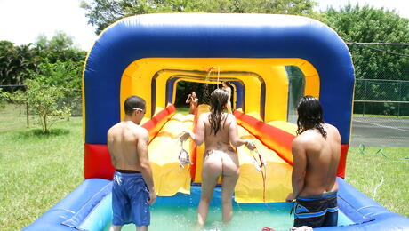 Deluxe girls Jynx Maze and Onia Nevaeh sucking deep rod on the night party