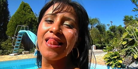 Deluxe latina Alessandra Marques in sexy stockings fucking with dude at pool
