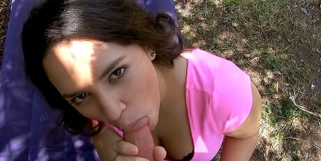 Deluxe latina Amy Lopez sucking on rod outdoor