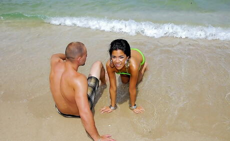 Deluxe latina babe Alana Jade exhibits her butt at beach