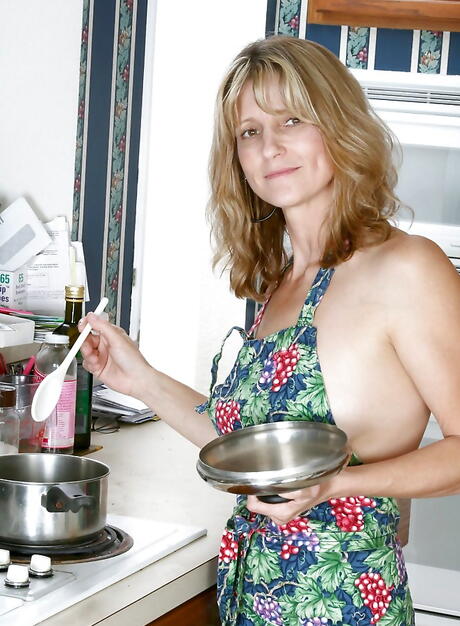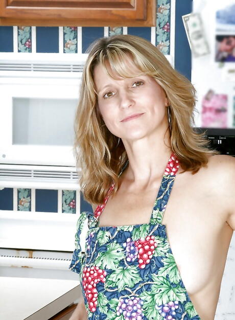 Deluxe mature Berkley exposes big boobies and toys her twat in the kitchen
