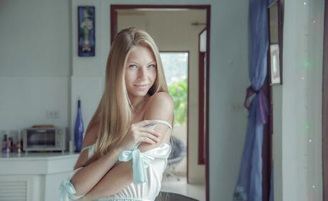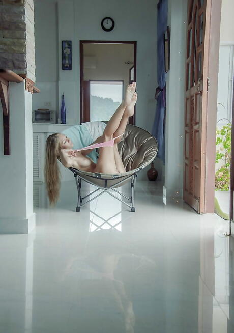 Deluxe russian blonde Krystal Boyd exhibits her butt in undies and hairy pussy
