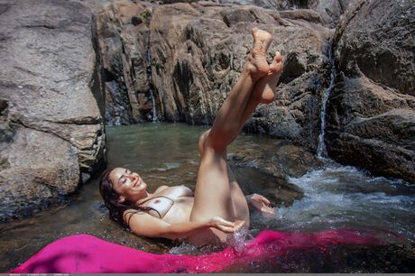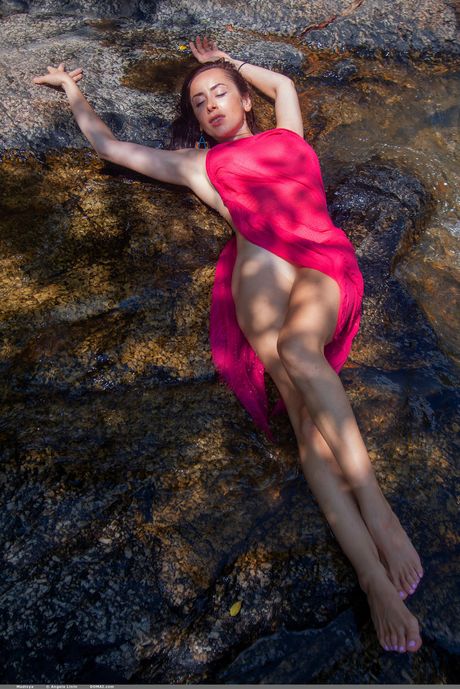 Adorable teen Madivya models totally naked in a shallow pool of water