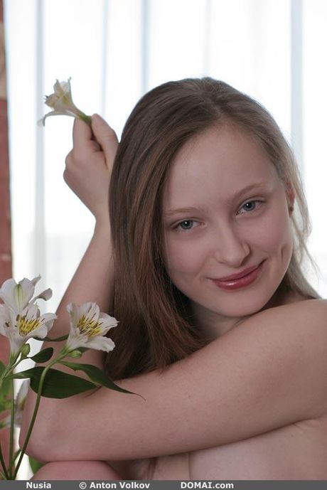 Adorable teen Nusia shows her tiny tits and poses naked in a provocative way
