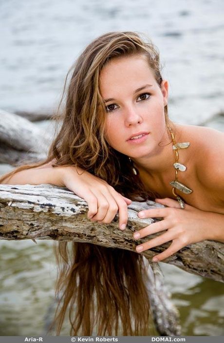 Angelic teen Aria R poses naked without embarrassment on a bed