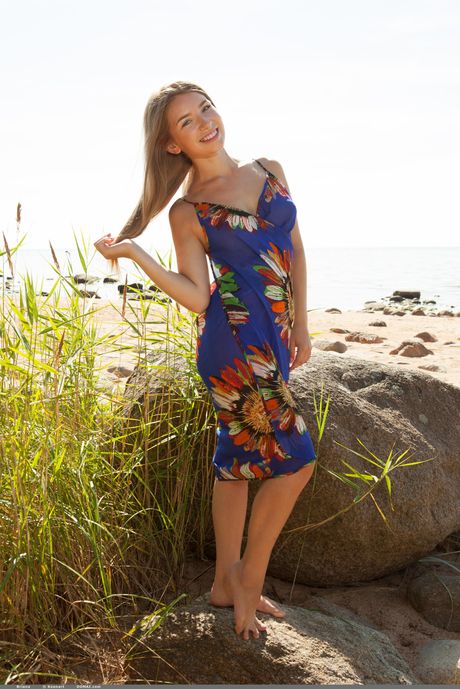 Blonde teen Briana takes it all off on a sandy beach in the nude