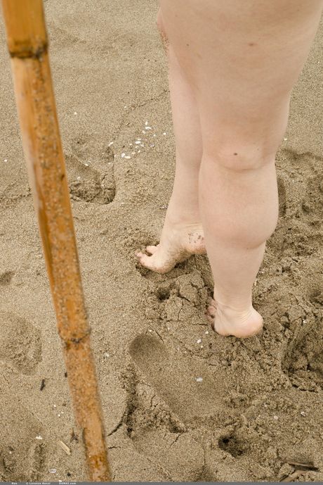 Blonde teen Nae gets naked on a beach in pigtails and a smile