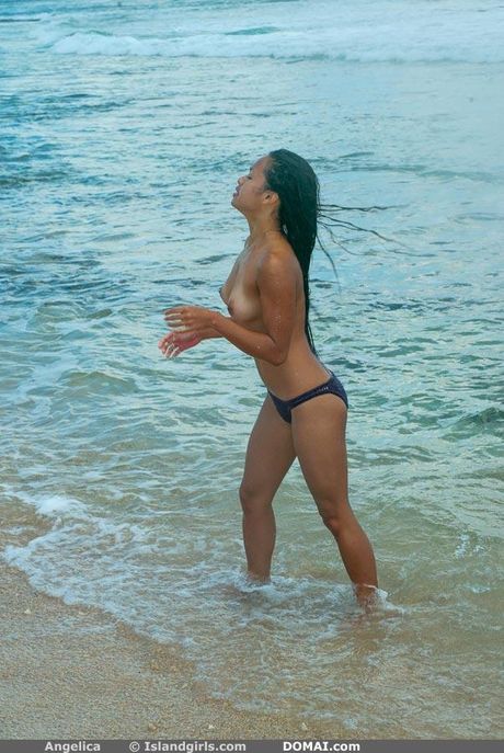 Delicate teen Angelica shows her small tits and bares it all in a solo