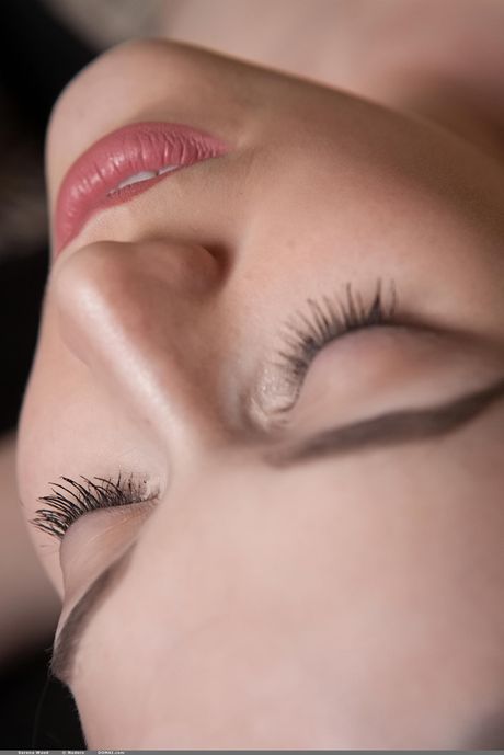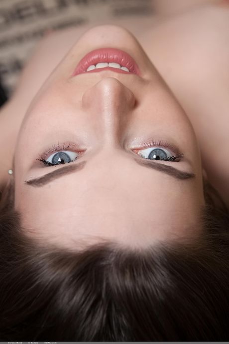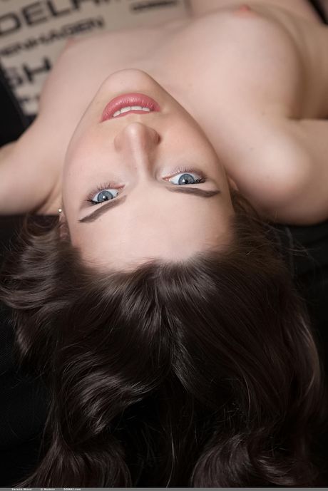 Delicate teen Serena Wood shows her big tits and poses naked in a solo