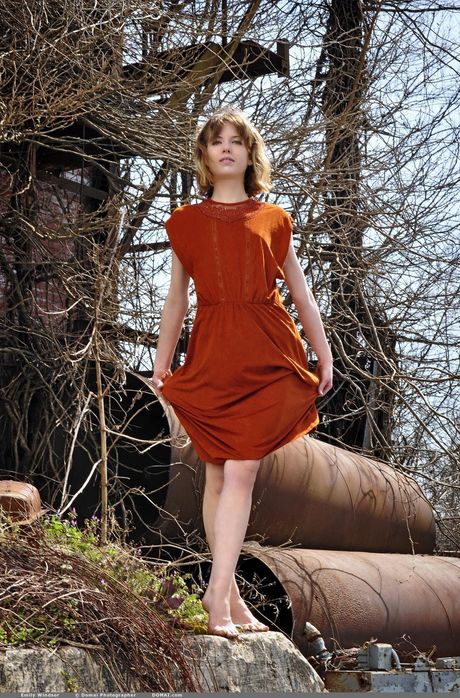 Emily Windsor strips her black dress and shows her hairy pussy outdoors