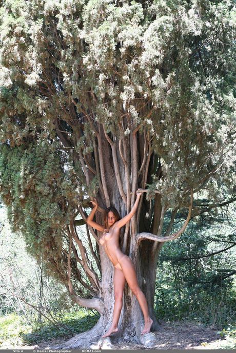 Hot redhead Vita A poses naked in the forest to show her big tits and ass