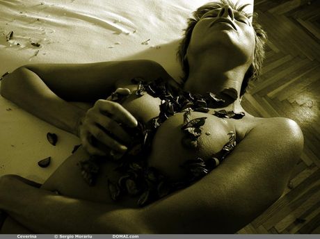 Lean teen Ceverina shows her small tits and poses nude in a solo