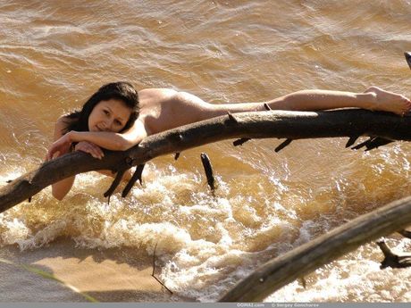 Lean teen Lilu poses nude on a rocky beach and demonstrates her tiny tits