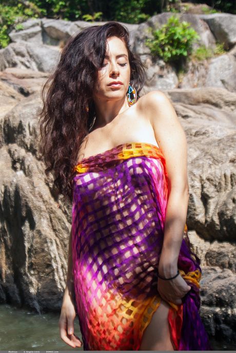 Naked teen Madivya strikes great solo poses on a patio in the nude