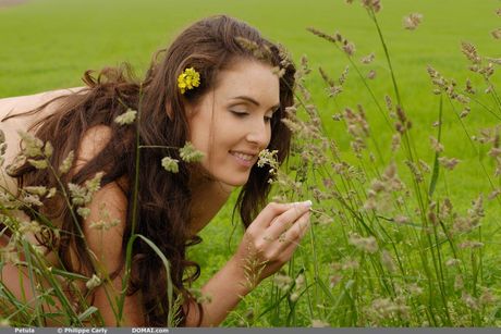 Naked teen Petula shows her big tits and ass in a field of wildflowers