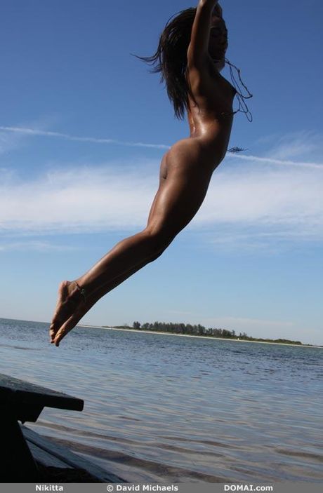 Nikitta takes off her clothes and jumps into the water