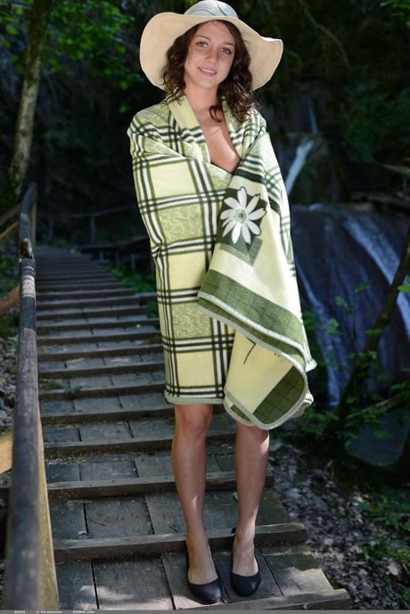 Skinny blonde Katoa shows her small tits and poses naked in a solo