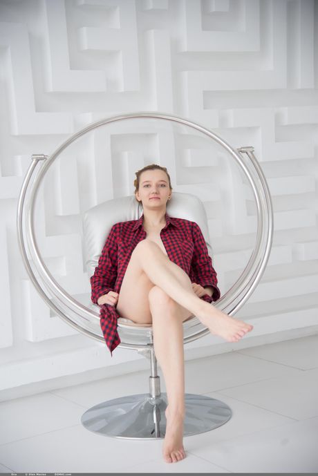 Skinny teen Ena with tiny tits and bald pussy poses naked on the floor