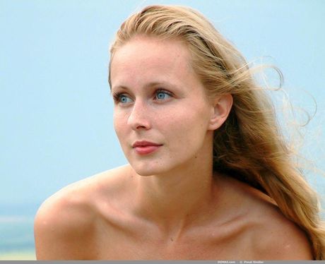 Skinny teen Lenka poses totally naked on a rocky outcropping